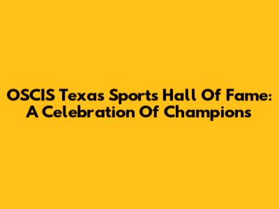 OSCIS Texas Sports Hall Of Fame: A Celebration Of Champions