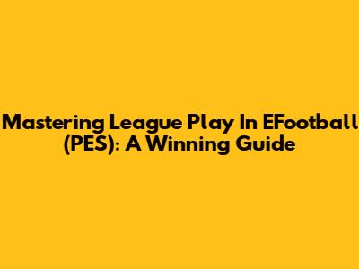 Mastering League Play In EFootball (PES): A Winning Guide