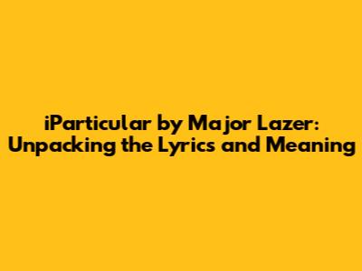 Hey music lovers! Ever gotten a song stuck in your head and just had to know what it was all about? Well, if you're vibing with Major Lazer's track "iParticular," you're in the right place. We're diving deep into the lyrics of iParticular, the meaning behind the song, and a little bit of analysis to give you the full picture. So, grab your headphones, crank up the volume, and let's unravel this musical masterpiece together. This article aims to break down the complexities of the song in an accessible way, helping you understand the message Major Lazer is conveying. We'll explore the various interpretations and insights that can be gleaned from the lyrics and the overall feel of the track. If you are a fan of Major Lazer or are just discovering them, you will find this information useful and interesting to enhance your appreciation for this great song and its artistic value.