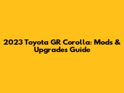 2023 Toyota GR Corolla: Mods & Upgrades Guide