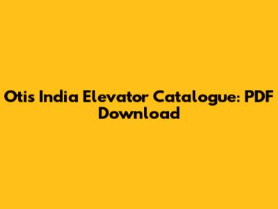 Otis India Elevator Catalogue: PDF Download