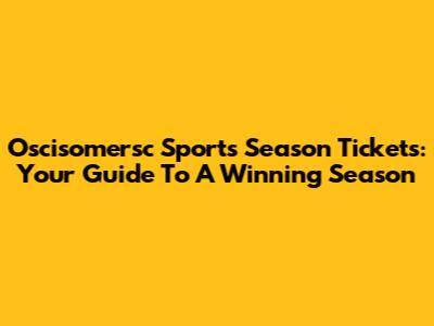 Oscisomersc Sports Season Tickets: Your Guide To A Winning Season