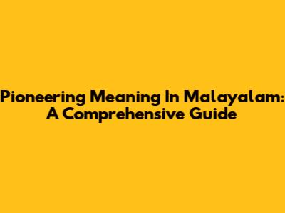 Pioneering Meaning In Malayalam: A Comprehensive Guide
