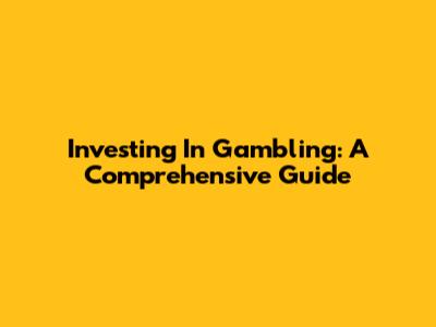 Investing In Gambling: A Comprehensive Guide