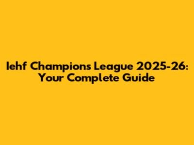 Iehf Champions League 2025-26: Your Complete Guide