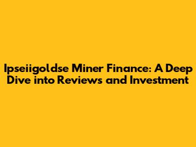 Hey guys! Ever heard of Ipseiigoldse Miner Finance? If you're into the world of investments, especially the exciting realm of gold mining, chances are you've stumbled upon it. Well, let's dive deep into this topic! We're talking about a comprehensive Ipseiigoldse Miner Finance review, dissecting everything from the basics to the nitty-gritty details that matter when you're considering putting your hard-earned cash into the mix. This review isn't just a surface-level glance; we'll explore the company, the business model, the potential risks, and the possible rewards. Plus, we'll check out what real users are saying – the good, the bad, and everything in between – so you get a well-rounded picture. Buckle up, because we're about to explore the ins and outs of Ipseiigoldse and what it has to offer. Understanding the landscape of gold mining finance is crucial before making any moves. The goal here is to give you a clear, unbiased understanding, helping you decide if Ipseiigoldse aligns with your financial goals and risk tolerance. We'll start by breaking down the company’s background, its specific financial products, and how they operate within the gold mining sector. Then, we will look into the crucial aspect of evaluating the risks. We'll also cover the types of returns you could expect and how they compare with other investment options. Finally, we'll address user reviews to get a realistic perspective on this financial venture. Ready? Let's get started!
