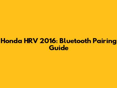 Honda HRV 2016: Bluetooth Pairing Guide