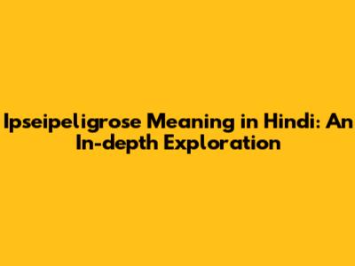 Hey guys! Ever stumbled upon a word that sounds like it came straight out of a secret code? That's how I felt when I first encountered "ipseipeligrose." It's not exactly a word you hear every day, right? So, let's dive headfirst into the fascinating world of language and unravel the ipseipeligrose meaning in Hindi. Get ready for a linguistic adventure as we decode this word, understand its nuances, and explore its usage. Buckle up, because we're about to embark on an exciting journey to understand what this word is all about.