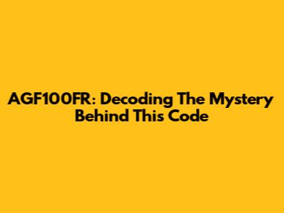 AGF100FR: Decoding The Mystery Behind This Code