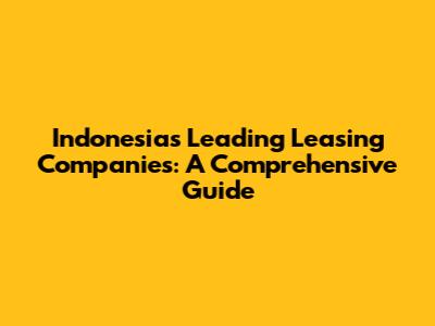 Indonesia's Leading Leasing Companies: A Comprehensive Guide