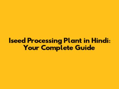 Iseed Processing Plant in Hindi: Practical Aspects