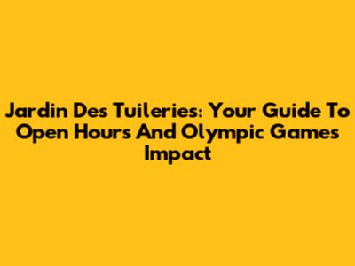 Jardin Des Tuileries: Your Guide To Open Hours And Olympic Games Impact