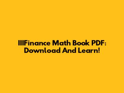 IIIFinance Math Book PDF: Download And Learn!