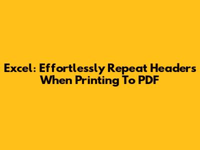 Excel: Effortlessly Repeat Headers When Printing To PDF