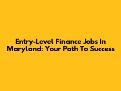 Entry-Level Finance Jobs In Maryland: Your Path To Success