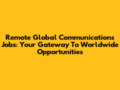 Remote Global Communications Jobs: Your Gateway To Worldwide Opportunities
