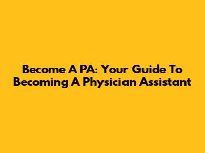 Become A PA: Your Guide To Becoming A Physician Assistant