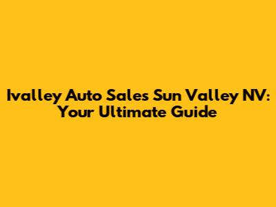 Hey guys! Welcome to your go-to guide for everything Ivalley Auto Sales in Sun Valley, NV! Thinking about finding a new ride or just curious about what's out there? You've come to the right place. We're going to dive deep into what makes Ivalley Auto Sales a local favorite, what you can expect when you visit, and how to make the most of your car-buying journey. Get ready to explore the ins and outs of this awesome dealership and get the lowdown on getting yourself behind the wheel of a great car! We'll cover everything from their inventory to their customer service, ensuring you have all the info you need to make a smart decision. Let's get started!
