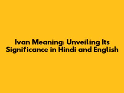 Exploring the Hindi Meaning of Ivan