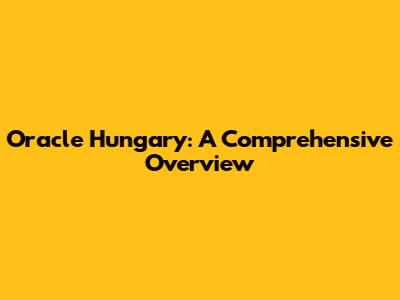 Oracle Hungary: A Comprehensive Overview