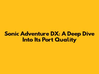 Sonic Adventure DX: A Deep Dive Into Its Port Quality