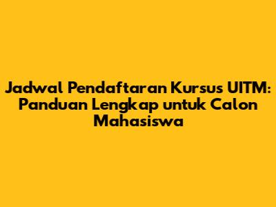 Nah, guys, itulah panduan lengkap mengenai jadwal pendaftaran kursus di UITM. Semoga informasi ini bermanfaat bagi kamu semua, ya! Jangan lupa untuk selalu memantau informasi resmi dari UITM dan persiapkan diri sebaik mungkin agar kamu bisa mengikuti kursus yang kamu impikan. Sukses selalu!