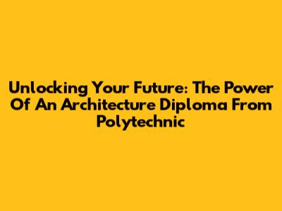 Unlocking Your Future: The Power Of An Architecture Diploma From Polytechnic