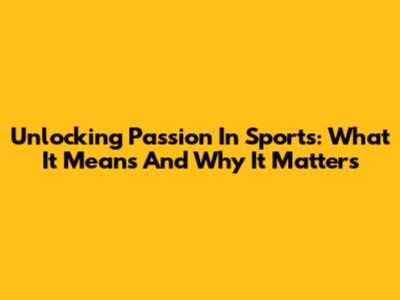 Unlocking Passion In Sports: What It Means And Why It Matters