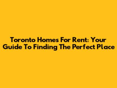 Toronto Homes For Rent: Your Guide To Finding The Perfect Place