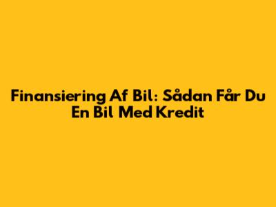 Finansiering Af Bil: Sådan Får Du En Bil Med Kredit