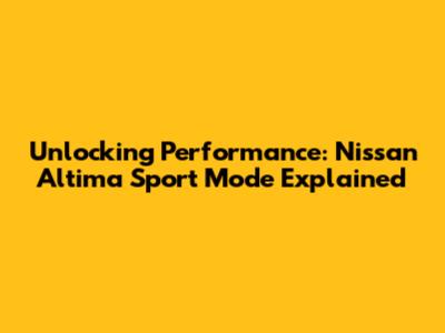 Unlocking Performance: Nissan Altima Sport Mode Explained