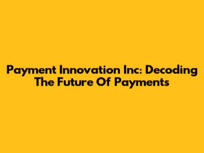 Payment Innovation Inc: Decoding The Future Of Payments