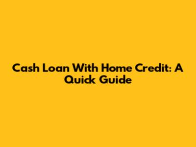 Cash Loan With Home Credit: A Quick Guide