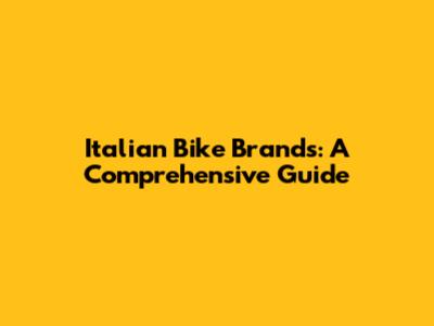 Italian Bike Brands: A Comprehensive Guide