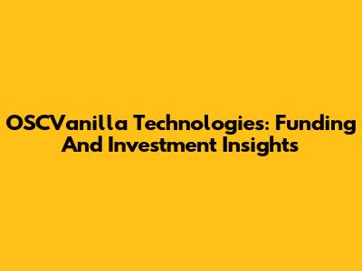 OSCVanilla Technologies: Funding And Investment Insights