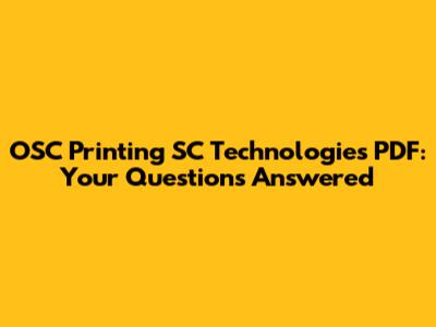 OSC Printing SC Technologies PDF: Your Questions Answered