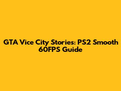 GTA Vice City Stories: PS2 Smooth 60FPS Guide