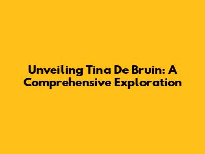 Unveiling Tina De Bruin: A Comprehensive Exploration