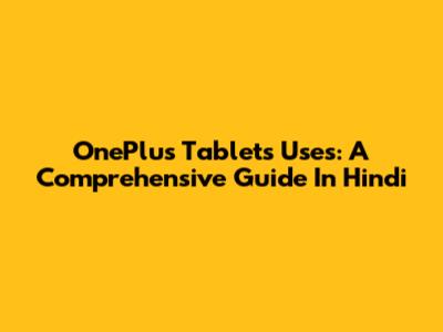 OnePlus Tablets Uses: A Comprehensive Guide In Hindi