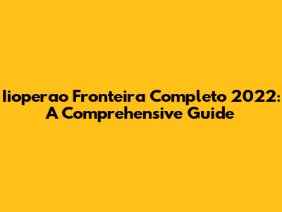 Iioperao Fronteira Completo 2022: A Comprehensive Guide