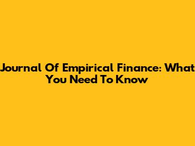 Journal Of Empirical Finance: What You Need To Know