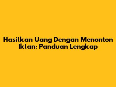 Hasilkan Uang Dengan Menonton Iklan: Panduan Lengkap