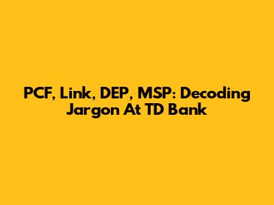 PCF, Link, DEP, MSP: Decoding Jargon At TD Bank