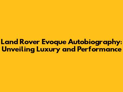 Hey everyone, let's dive into the Land Rover Evoque Autobiography, shall we? This isn't just any SUV; it's a statement. It's about luxury, performance, and making heads turn. The Evoque Autobiography sits at the pinnacle of the Evoque range, offering a blend of premium features, cutting-edge technology, and a driving experience that's hard to beat. If you're looking for a vehicle that screams sophistication, this might be your match. So, grab a coffee (or your beverage of choice), and let's explore what makes the Evoque Autobiography so special. We'll be covering everything from its design and features to its performance and how it stacks up against the competition. Ready?