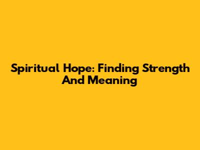 Spiritual Hope: Finding Strength And Meaning