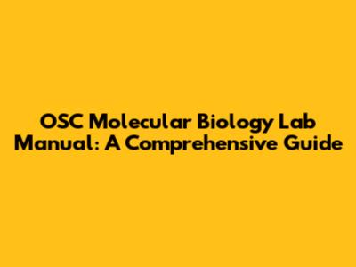 OSC Molecular Biology Lab Manual: A Comprehensive Guide