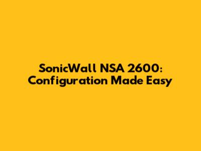 SonicWall NSA 2600: Configuration Made Easy