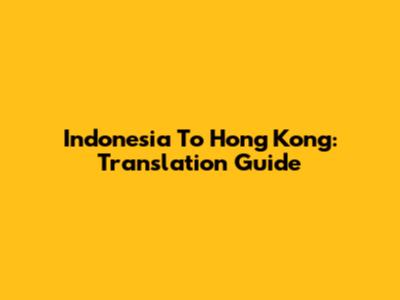 Indonesia To Hong Kong: Translation Guide