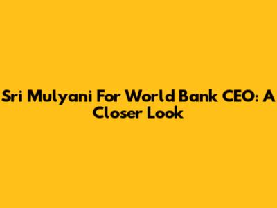 Sri Mulyani For World Bank CEO: A Closer Look