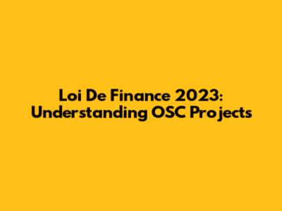 Loi De Finance 2023: Understanding OSC Projects